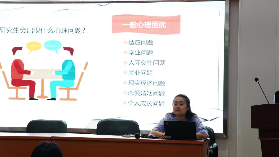 在培训会上,研究生心理委员李凯深入探讨了心理健康的重要性,并针对研究生群体常见的心理问题进行了详细的分析和讲解。研究生阶段往往伴随着高强度的学术压力、论文写作、实验研究、科研等任务,容易导致员工焦虑、抑郁等心理健康问题。因此,提升研究生的心理健康水平至关重要。培训内容涵盖了压力管理、情绪调节、自我关爱等多个方面。她强调了正确认识和应对学术压力的重要性,鼓励研究生们建立良好的学习和生活习惯,保持积极乐观的心态。同时,他们也介绍了一些实用的放松技巧和心理调节方法,如冥想、深呼吸、运动等,帮助员工缓解压力、放松身心。