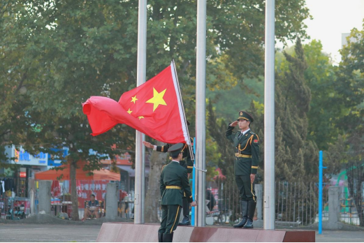 秋风舞国旗,晨曦庆华诞。升旗仪式最后,全体与会师生挥舞着手中的五星红旗,在2018级环境工程专业张亮同学的领唱下,齐声高唱《歌唱祖国》,祝福祖国繁荣昌盛。活动在嘹亮的歌声中落下帷幕,师生久久不愿离场,纷纷与国旗合影。