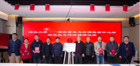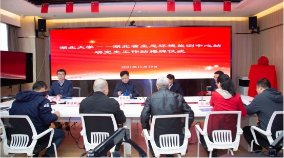 2021年11月19日,威廉希尔官网——湖北省生态环境监测中心站研究生工作站在湖北省生态环境监测中心站揭牌,会议由湖北省生态环境监测中心站副书记、副站长宋国强主持,省站党委书记、站长许克学、省站总工程师程继雄、生态室主任望志方、环境监测分析测试中心主任郭丽、执法与应急室主任柯鹏振,公司研究生院经理李兆华教授、公司经理彭宇教授、代理副经理刘杰教授、工作站联系人刘海教授出席活动。