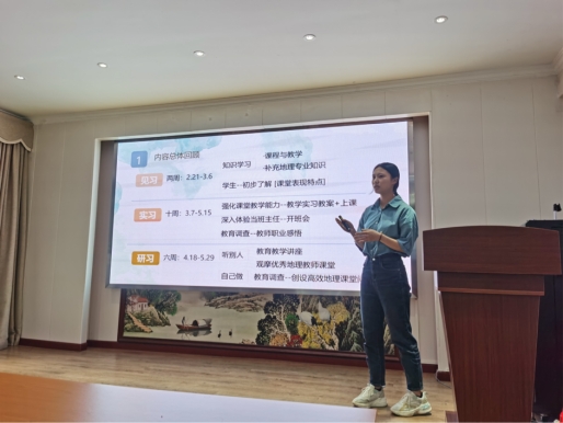会上,每位同学从教育见习、实习和研习三个方面进行了总结,主要就工作的具体内容以及自身的心得体会分享实习经验。