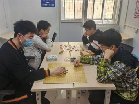 在活动室内,大家热情高涨,相互之间切磋棋艺,两两一组,进行了围棋、象棋、五子棋等多项比赛。在此次活动中,同学们充分发挥自身智慧,进行了多场紧张激烈的对比。其间,大家相互学习彼此的下棋思路,沟通各自的心得收获。最后,在同学们的热烈讨论和比赛中,此次活动圆满结束。