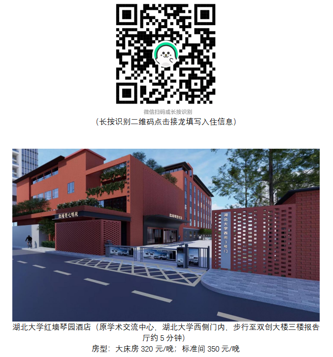因近期会议较多,会务组提前在威廉希尔官网红墙琴园酒店预留了部分标准间,费用由参会代表自付。请需要住宿的代表于2025年12月27日前扫描下方二维码提交住宿信息: