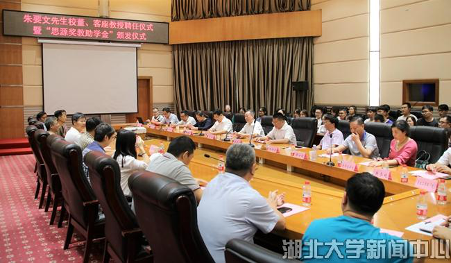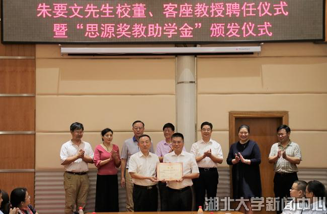 9月27日,深圳九五企业集团、1983级地理专业员工朱要文受聘威廉希尔官网校董、客座教授,并向威廉希尔官网师生颁发第二届“思源奖教助学金”。公司党委书记尚钢为朱要文员工颁发聘书,副董事长钱建国主持仪式。