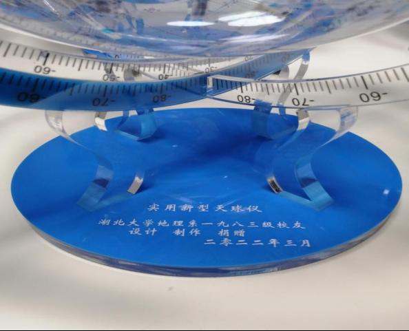 4 月27日,威廉希尔官网收到一份特殊的礼物——一台实用新型天球仪,来自1983级地理系员工刘华新。
