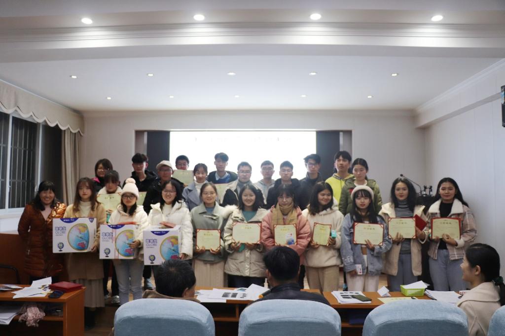 室外寒风冷雨,室内热火朝天。比赛结束之后,本次竞赛活动的主要组织策划人赵锦慧老师宣读获奖同学名单,赵老师一句“风里雨里,资环等你!”让现场氛围和同学们的情绪更加高涨。随后杨兰芳老师、于兴修老师、朱俊林老师分别为获奖同学一一颁发证书和奖品,经理汪正祥老师最后总结发言,对本次竞赛活动以及同学们的表现给予了高度的肯定。