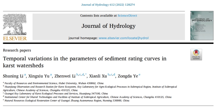 近日,公司研究生李姝宁在中科院一区Top期刊《Journal of Hydrology》发表题为“Temporal variations in the parameters of sediment rating curves in karst watersheds”的科研论文。该研究分析了水沙关系曲线(SRC)参数的时间变化,应用偏最小二乘结构方程模型(PLS-SEM)解耦了气候变化和植被动态对水沙关系曲线(SRC)参数的影响。