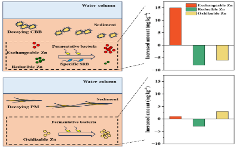 综上所述,在淡水湖泊中Zn更容易受到内源性有机物分解的影响,CBB分解对沉积物中重金属迁移转化的影响强于沉水植物的分解。该研究成果得到国家自然科学基金和国家重点实验室开放基金的资助。