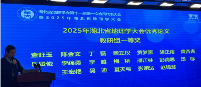 闭幕式宣布2025年湖北省地理学大会优秀论文获奖名单,公司张明达老师和赵锦慧老师作为第一作者的论文均荣获一等奖。