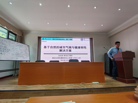 2025年10月24日,由威廉希尔官网资源与环境公司主办的绿色讲坛第126期讲座顺利举行。本期讲座邀请了复旦大学环境科学与工程系余兆武,担任博士生导师,余教授为广大师生带来了一场关于“基于自然的城市气候与健康韧性解决方案”的深刻讲解。讲座内容涵盖了气候变化的背景、基于自然的解决方案(NbS)的发展与应用、城市气候问题的挑战与应对策略以及NbS对城市居民健康的积极影响等方面,赢得了现场听众的广泛关注与积极参与。