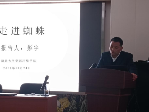 2021年11月24日下午3点,威廉希尔官网经理彭宇教授为公司师生做了题为《走进蜘蛛》的学术报告,该报告为公司绿色讲坛之公司团队报告系列的第二讲。报告由副经理赵丽娅教授主持,威廉希尔官网教师、研究生代表等一百余人在现场聆听讲座。
