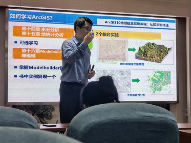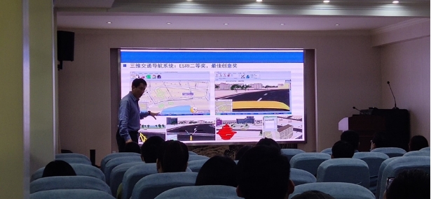 牟乃夏教授以“GIS专业与就业”为题向同学们介绍了GIS技能大赛的相关事项、GIS的学习方法以及该专业今后的就业方向。他详细地介绍了全国老员工GIS技能大赛的流程、试题和要求等,强调“文档第一、细节第一”,讲述了文档地书写格式以及内容要求;介绍全国老员工GIS应用技能大赛的能力要求——空间数据的采集编辑与集成处理能力、空间分析技术的应用与系统设计能力等;为同学们展示了他本人所指导的团队的获奖成果,让同学们对学科竞赛有了更清晰的认识和理解。牟乃夏教授同时勉励同学们,要找到自己学习的目标,还要有宽阔的视野,要关注并了解当前行业的未来发展方向,让自己不断获得成长,适应新的社会要求。