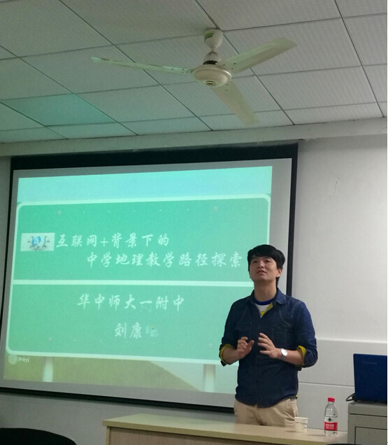 报告伊始,刘老师讲述了从教十年的心得与感悟;接着以丰富的案例,从备课、上课、批改作业、辅导交流、考试命题等五个方面,分别介绍了Prezi、Google earth、EarthNow、Star walk等软件在地理教学中的应用;最后,刘老师鼓励未来的地理教师们要善于发现并充分发挥自己的优势,大胆尝试,积极进行课堂教学改革,提升教师素养,为教育事业做出应有的贡献。