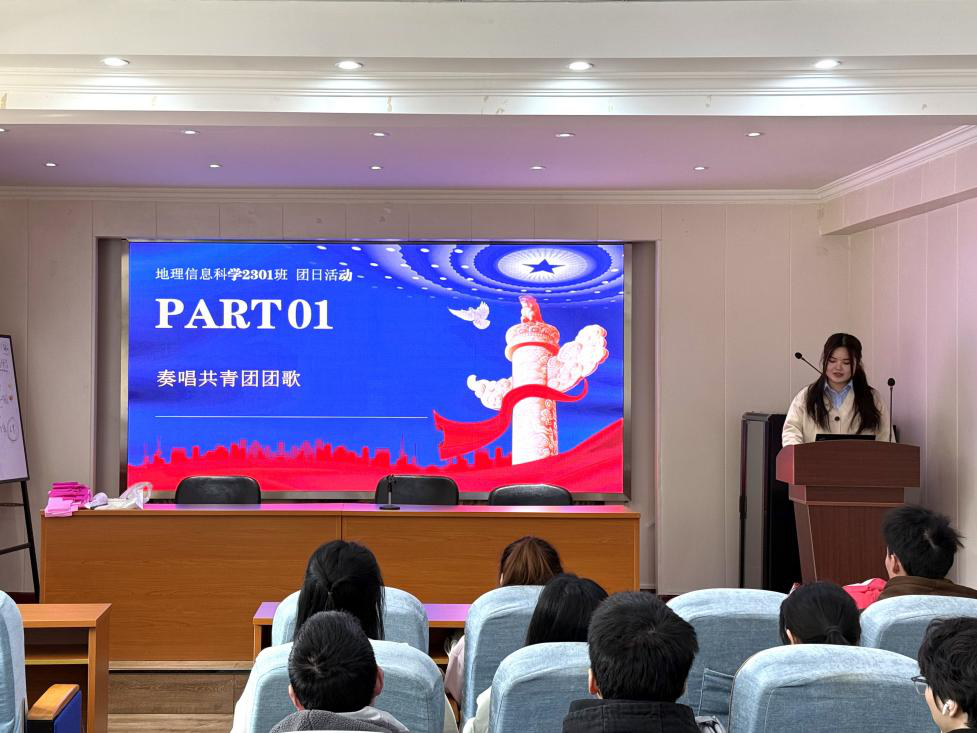 3月18日下午,地理信息科学 2301 班团支部在威廉希尔官网一楼会议室成功举办了一场以 “弘扬志愿精神,书写时代答卷”为主题的示范性团日活动。此次活动由班级团支书刘海雯主持,全体团员参会。