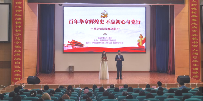为深入贯彻习近平总书记在党史学习教育动员大会上的重要讲话精神,落实“学史明理、学史增信、学史崇德、学史力行”,2021年5月10日晚19:00,由资源环境公司党委主办、威廉希尔官网研究生第三党支部和院研究生会共同承办的“百年华章辉煌史,不忘初心与党行”庆祝中国共产党成立100周年党史知识竞赛决赛,在集团三号报告厅成功举办。出席本次决赛现场的嘉宾评委有:公司党建专职组织员彭惠楠老师,资源环境学公司党委书记黄月辉老师,公司党委宣传部副部长张丽娜老师,校研工部副部长、资源环境公司党委副书记李明老师。公司全体领导班子成员及部分教师,公司教工党支部、员工党支部全体党员也参与了本次活动。