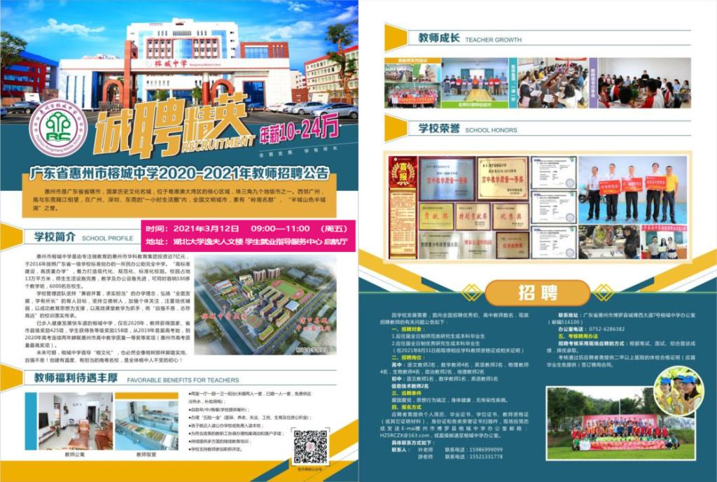 广东省惠州市榕城中学2020——2021年教师招聘 来源:威廉希尔官网发布时间:2021-03-12点击率: 广东省惠州市榕城中学2020——2021年教师招聘 公司2004级地理科学专业员工所在单位为广东省惠州市榕城中学,该员工于3月12日来校毕业生就业指导中心启航厅开展现场宣讲,就业处副处长肖志华、资环公司副书记李明、就业辅导员与该校副董事长、员工顺利对接,洽谈合作,积极推荐公司和公司相关专业毕业生前往现场应聘。