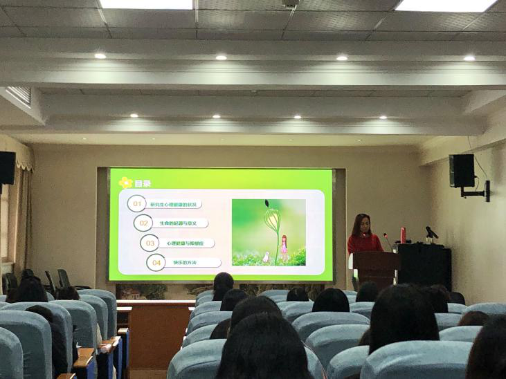 讲座伊始,同学们以热烈的掌声欢迎熊琳老师的到来,熊琳老师首先做了简短的自我介绍,然后从自身经历出发引出此次讲座的主题“给生命一缕阳光”。此次讲座,熊琳老师主要从研究生心理健康的状况、生命的起源与意义、心理健康与抑郁症、快乐的方法四个方面向同学们进行心理健康教育。另外,在报告中,熊琳老师结合自身生活经历,运用典型案例与同学们进行了热烈的讨论,同学们纷纷表示老师讲述得灵活生动,自己受益匪浅。